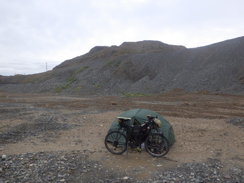 中国2 9日目 土砂集積地〜ウルムチから西北西に約120km マナスの町 テントを叩く雨音で目を覚ました午前5時。こういう時ネットが使えると便···