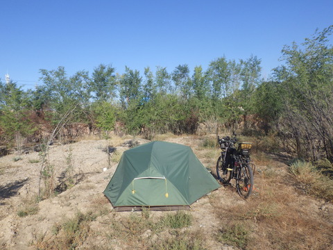 中国2 10日目 マナスの町〜ウルムチから北西に44km地点 廃農場 ウルムチまで微妙な距離残ってしまい、頑張って今日中に到着するかゆっくり走···