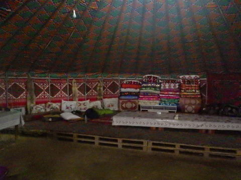中国2 18日目 ユルトテント〜ウルムチから北東に約360km タイケシケンの町 テントを雨が叩く音で目を覚まし「テント内に止めてもらえて本当···